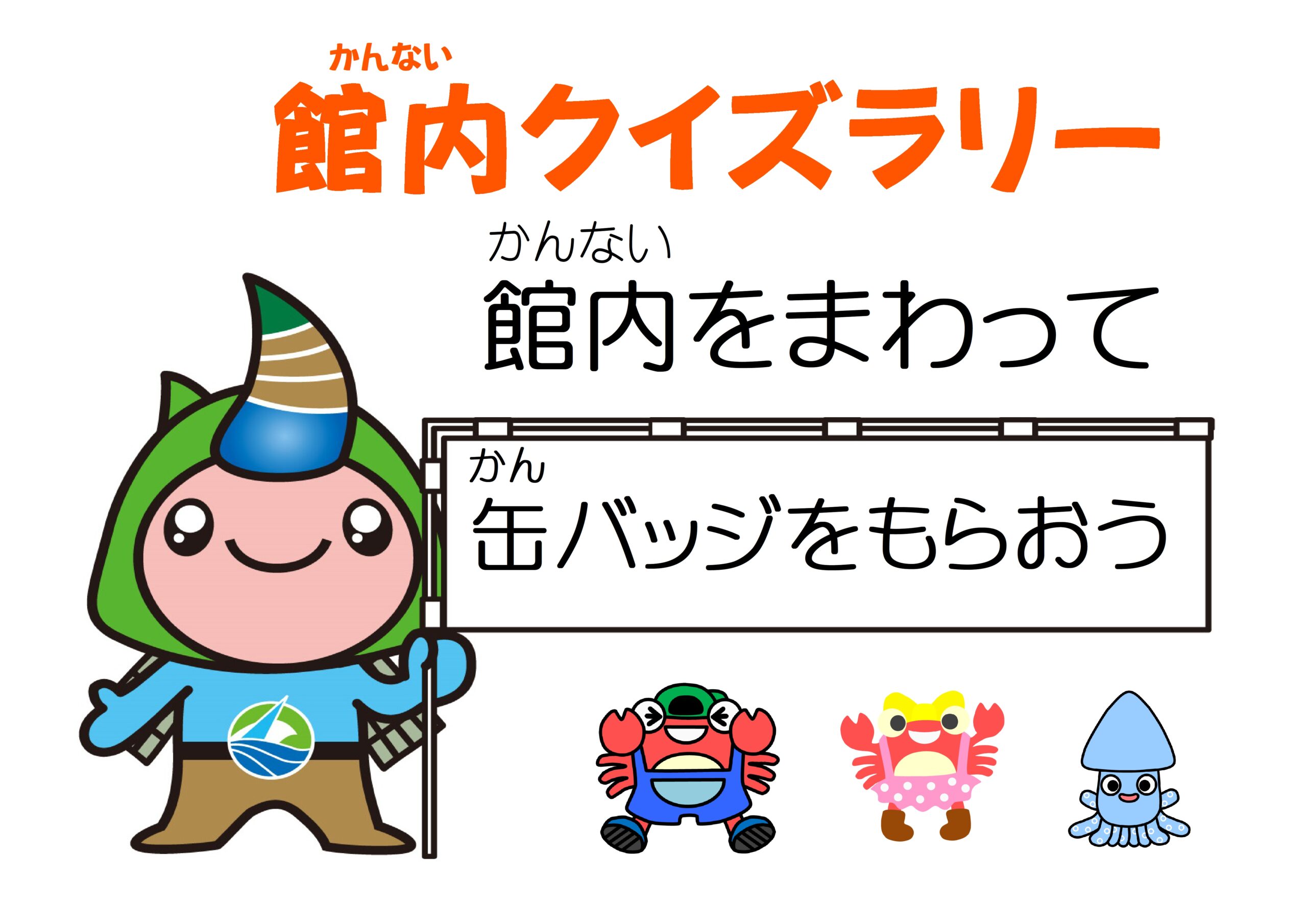 館内クイズラリーで缶バッジ(缶マグネット)をもらおう!